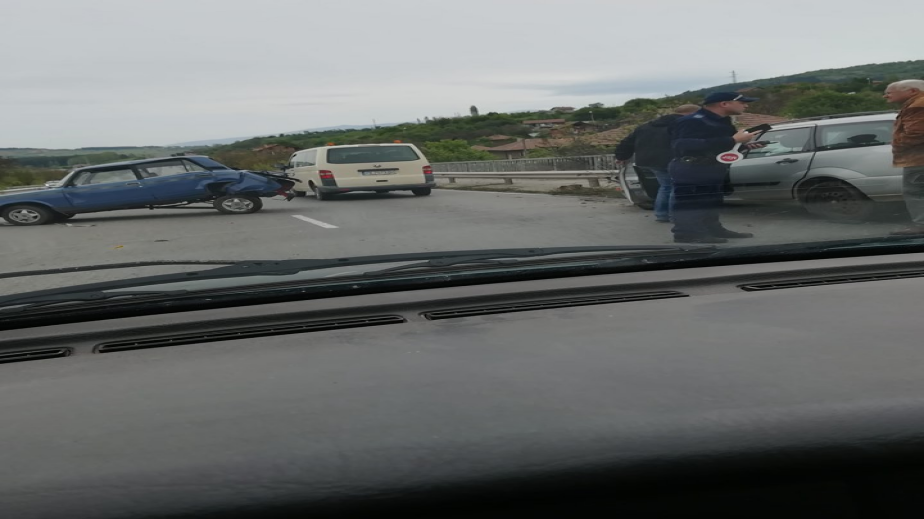 Сблъскали са се „Лада“ и „Форд“. Руското возило се завъртяло на средата на пътя и запушило движението. То е със смазана задна част. Ударът на форда е от пред. При сблъсъка се е отворила въздушната възглавница.