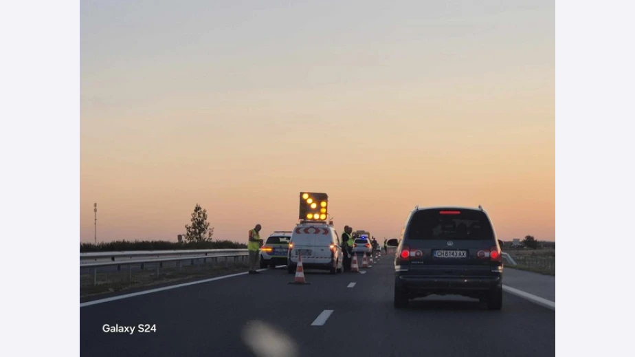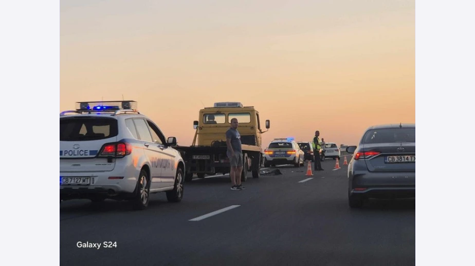 Временно е ограничено движението в активната лента. Трафикът се осъществява в изпреварващата лента и се регулира от пътна полиция. Не е ясно дали има пострадали.