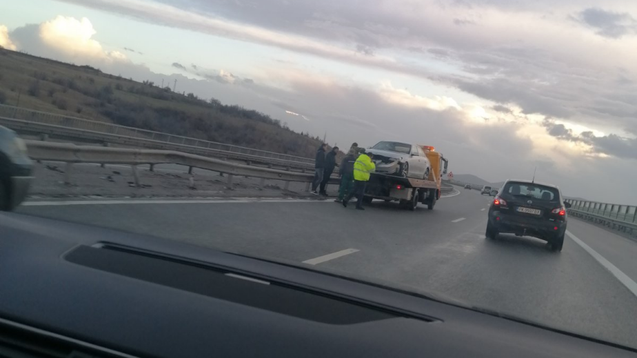 Лек автомобил БМВ вероятно се е завъртяло на пътното платно и се е ударило в мантинелата. Колата е препречила едното платно. Заради катастрофата се образува огромно задръстване.