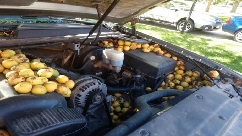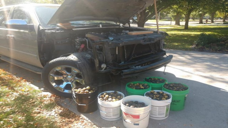 В края на октомври Бил Фишър от Гранд Форкс, Северна Дакота, открива под капака на своя пикап Chevrolet Avalanche скривалище на катерица, пълно с орехи. По думите на мъжа той запалил колата и чул странни звуци от двигателния отсек. Фишър веднага отворил предния капак и открил вътре купчина ядки.