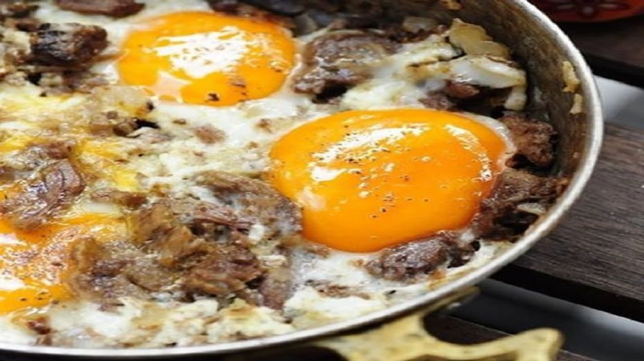 Месото се задушава в мазнината и малко вода. Прибавят се червеният и черният пипер, останалата вода и виното. Празът се нарязва на не много ситно и се прибавя след като месото е завряло. Когато месото и празът са омекнали, се прибавя дафиновият лист. Изсипва се в тава. Правят се "гнезда", в които се чукват яйцата и се запича за 10-на минути във фурната.