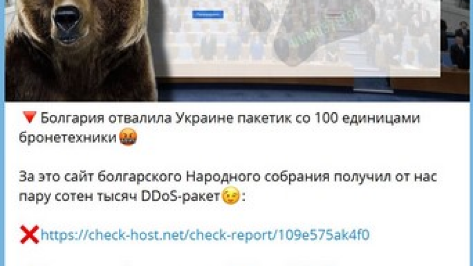 Мирчев е публикувал в социалната мрежа снимка и текст на екрана от Telegram канал. Там се съобщава, че България “е отстъпила на Украйна 100 единици бронирана техника”, поради което срещу сайта на българския парламент е използвана DDoS атака (отказ до достъп).