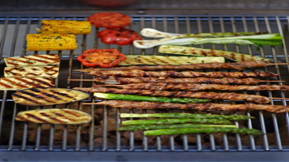 На скарата заедно с шишчетата се слагат и различни зеленчуци.