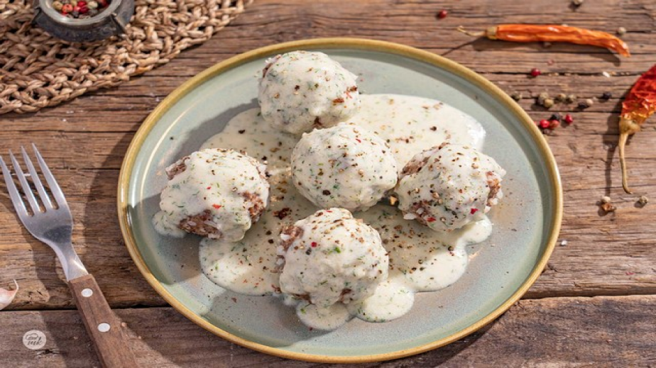 Сложете няколко кюфтенца в чиния, залейте с горещия сос и сервирайте. /Рецепта на matekitchen.com