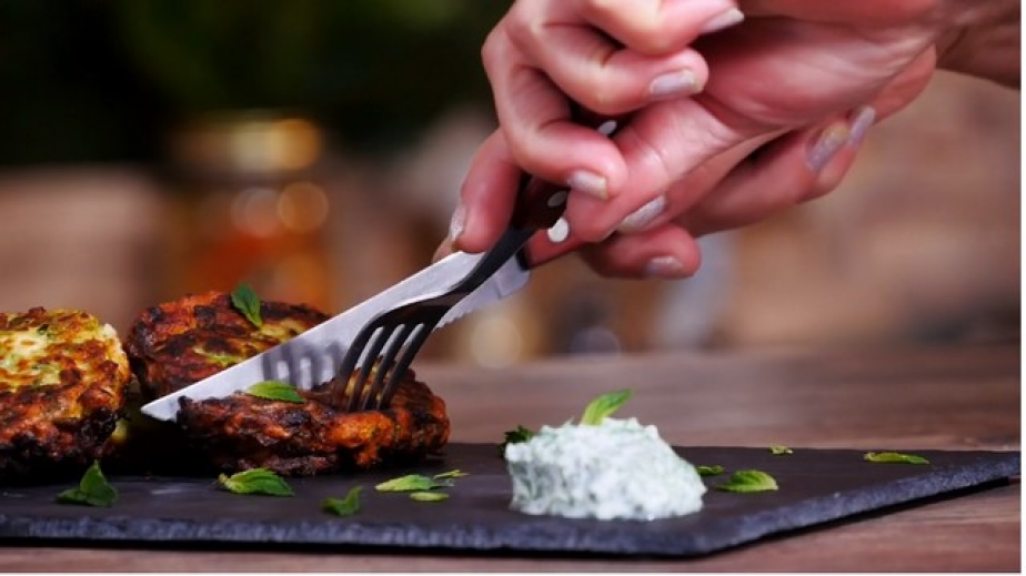 Сервирайте изпържените кюфтета от тиквички със сос от кисело мляко, копър и чесън./Рецептата е взета от matekitchen.com