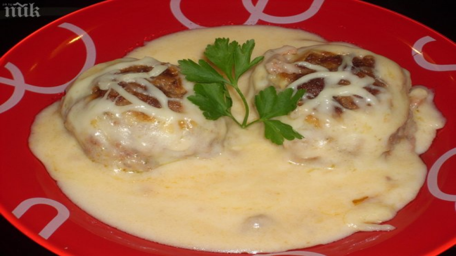 Пекат се 25 минути на загрята на 220 градуса фурна. След това се заливат със соса, приготвен от разбитото кисело мляко, брашното и зеленчуковата подправка, разтворена във вода. Пече се още около 15 минути.