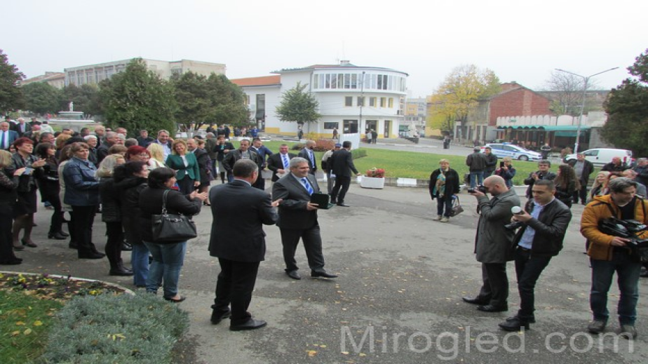 Кметът Пламен Алексиев бе посрещнат с пита и мед, а символичния ключ от общната му връчи временно изпхълняващият длъжността кмет инж. Димитър Димитров.