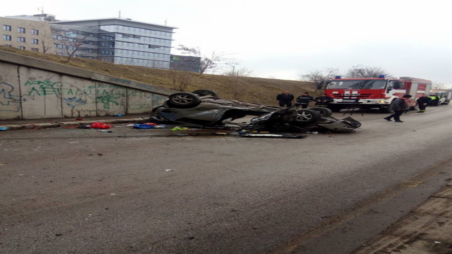 Кола излетя от моста до Бизнеспарка в София и се приземи по таван, съобщи БТВ. Сигналът за катастрофата е получен около 10 ч.