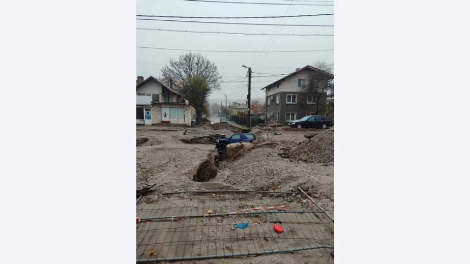 Автомобилът се е заклещил в изкопът, който е от ремонтните дейности за подмяна на водопровода. Не е ясно как е станал инцидента. Изкопът е ограден и има сигнализация. Все още не се знае и дали има пострадали или не.