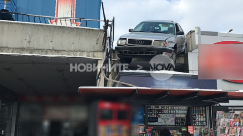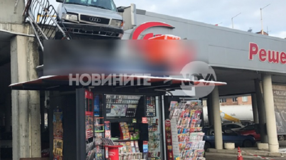 Кола падна върху будка за вестници и списания. Инцидентът се е случил на паркинга на хипермаркет във Велико Търново тази сутрин, съобщава Нова телевизия.