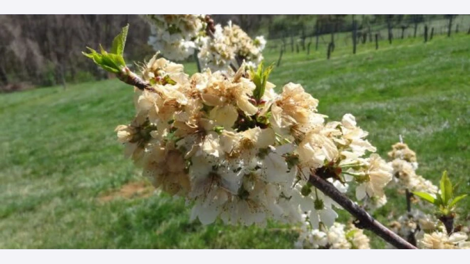 Припомняме, че от дни в страната времето е лошо, а температури падат дори под нулата. По-рано екип на NOVA посети една от черешовите градини в Централна България, която е унищожена напълно. В района на Мъглиж, Казанлък и Павел баня овошките са поразени от неочаквания студ.