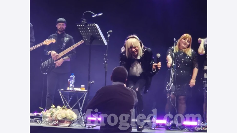 „Искам да ви поздравя по случай празника на Перник. Бъдете жива и здрави! Тук съм благодарение на вашия кмет Станислав Владимиров“, каза естрадната певица, а Владимиров отиде да целуне ръката на примата и да ѝ се поклони в знак на почит и уважение.