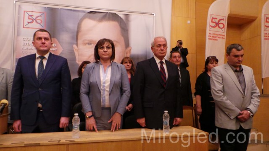 След тези слова на областния председател на пернишката организация на БСП Валентин Петков препълнената зала „Панорама“ в Перник избухна в нестихващи аплодисменти, в чест на кандидат - кмета на „БСП за България“ Станислав Владимиров. Той бе изключително впечатлен от изпълнената до краен предел зала от хора, дошли да го подкрепят в предстоящата му битка за кметския стол на миньорския град. Редом до него застана и лидерът на партията Корнелия Нинова, която тази вечер бе в Перник, за да го подкрепи и докаже своята преданост към хората от града на миньора.