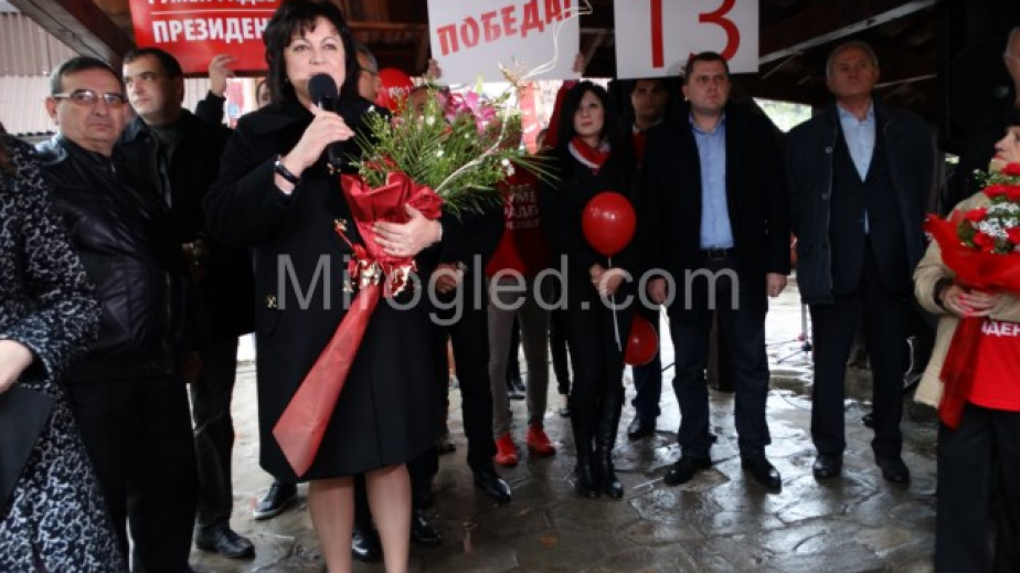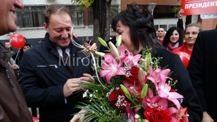 Тя бе посрещната от общинският председател на БСП в Перник Кирил Леонов, от областният председател на партията Станислав Владимиров, народните представители Ангел Найденов, Валери Жаблянов и Бриго Аспарухов, младежите от БСП, представители на местната структура и симпатизанти.