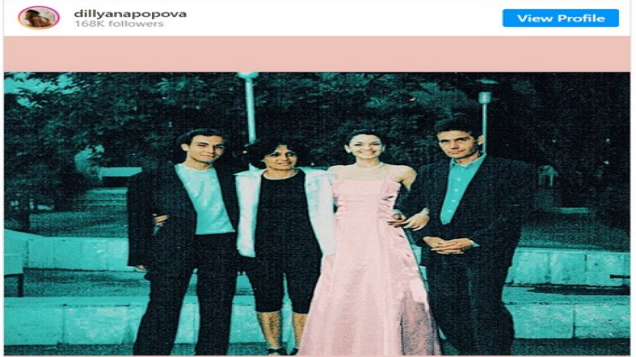 Друга прекрасна българка Диляна Попова си спомня за бала. "От времето, когато нямаше селфита, нямаше лаикове и всичко ни харесваше... Снимахме се с апаратчета и вероятно след тази снимка съм дала моето на маика ми да го пази, защото тогава се забавлявахме без залепен за ръката телефон. Тук съм с мама, тате и моя кавалер Финчи, когото срещнах в Техникума по облекло и е един от наи-добрите ми приятели и до днес... Спазих и традицията на Пепеляшка - розова рокля и прибиране боса...", разказва Попова. /Източник: woman.bg