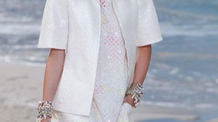 А вчера сутрин дефилира по белия пясък и истинските морски вълни, създадени специално за невероятния по традиция декор на новата колекция на "Шанел" пролет-лято 2019.