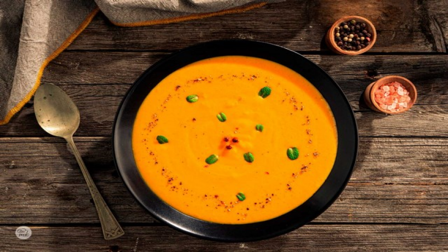 Поднесете морковената крем супа с крутони. /Рецепта на matekitchen.com