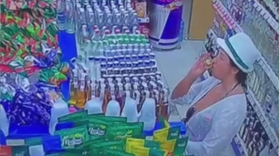 Туристка влиза сутринта в търговския обект и изпива три малки бутилки концентрат между рафтовете. Пие различни видове алкохол.