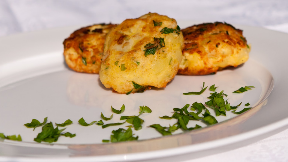 Накълцайте ситно праза и го задушете в олиото.Отделно сварете картофите и ги пюрирайте.Смесете ги с яйцата, кашкавала, запържения праз, черния и червен пипер и солта.Добре омесете сместа. С влажни ръце оформяйте кюфтета, оваляйте ги в галетата и ги изпържете до готовност в сгорещено олио.Поднесете кюфтетата от праз и картофи с майонезен сос.