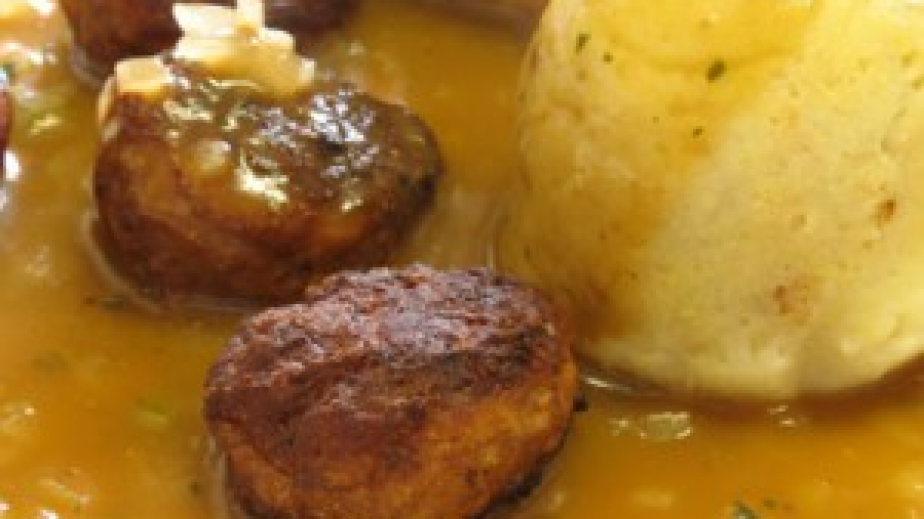 Телешки медальони с картофено пюре с манатарки