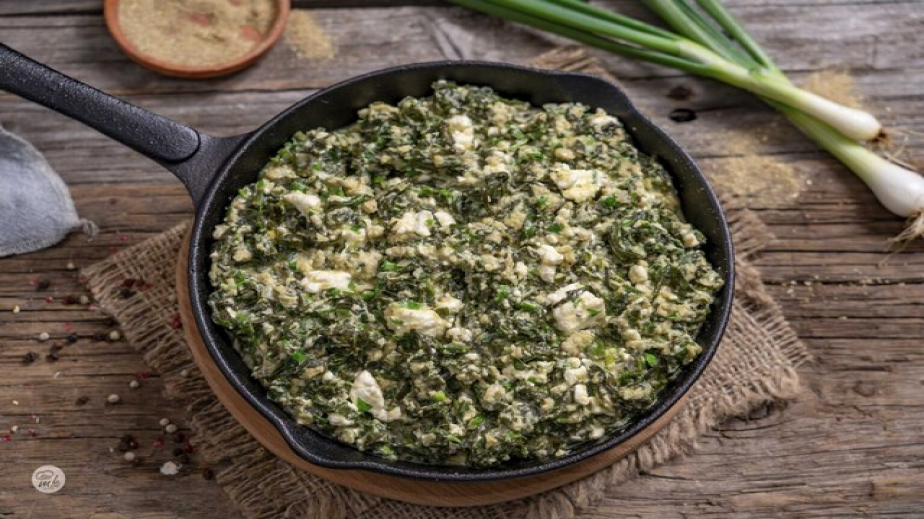 Когато видите, че яйцата започнат да се стягат, натрошете при тях сиренето и подправете със сол и черен пипер. Малко след това прибавете ситно нарязания магданоз, разбъркайте и отдръпнете от котлона. /Рецепта на matekitchen.com