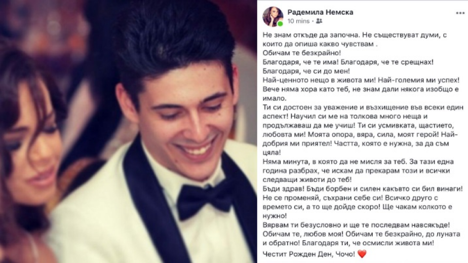 Радемила Немска написа във Фейсбук профила си текст, от който ясно личи, че красавицата е дълбоко влюбена в Чочо. Ето и гласи публикацията едно към едно:
