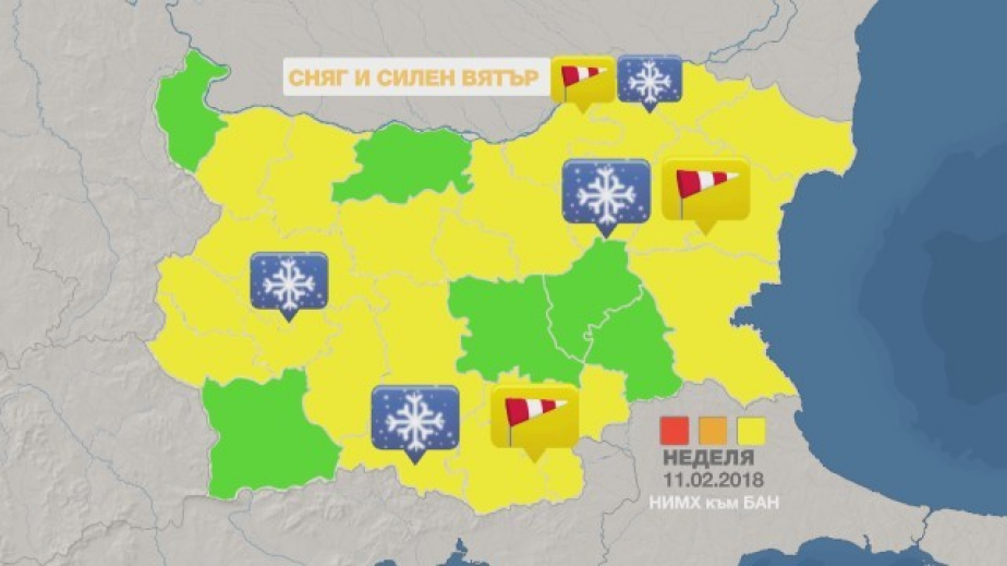В 22 области в страната е обявен жълт код за опасно време за 11 февруари. За 17 области е обявено предупреждение за силен вятър, сняг и поледици, съобщава БТВ.