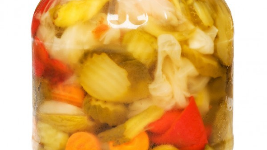 Измийте, подсушете и изтърбушете чушките. Почистете отстаналите зеленчуци, накълцайте зелето и нарежете доматите и морковите едро.Смесете всички продукти за маринатата и ги сложете да кипнат. Залейте всички зеленчуци с изстиналата марината и ги оставете да престоят така за 1 денонощие.След това ги напълнете в големи буркани и ги стерилизирайте.