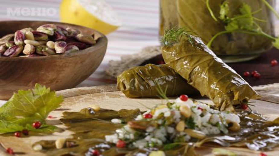 1.В сгорещения зехтин се задушават лукът и чесънът, докато леко започнат да се зачервяват. Прибавят се ядките, разбъркват се, докато се зачервят, сипва се измитият и подсушен ориз, разбърква се. Налива се виното и се разбърква, докато се изпари.