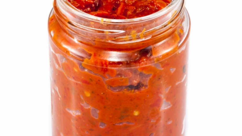 Пуснете доматите за 20-30 секунди в кипяща вода и веднага ги сложете в купа лед след това - така може лесно да ги обелите.Смелете всички зеленчуци и ябълките през машинка за мелене на месо.Зеленчуковото пюре сипете в дълбока тенджера и добавете сол и захар на вкус. По желание може да добавите и няколко изчистени люти чушки за по-голяма пикантност.Варете лютеницата на умерен до слаб котлона за около 1 час или докато се сгъсти. През цялото време бъркайте регулярно, за да не загори.Най-накрая добавете олиото и червения пипер и доварете за още 10 минути. След това напълнете в бурканчета, затворете и обърнете с капачките надолу, докато изстинат.
