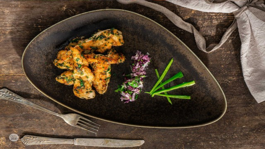Нарежете на ситно магданоза и чесъна, прибавете ги в тигана за 1-2 минути, изстискайте сока от половин лимон, разбъркайте и оттеглете от котлона.