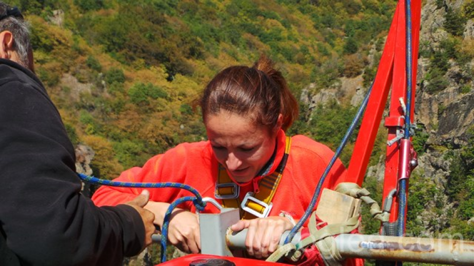 Перничанката изумила всички с хладнокръвното си поведение преди полета си. Височината, от която тя се е метнала с главата надолу е 70 м.