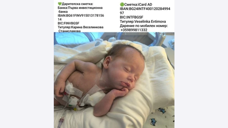 Бебе Карина Станиславова от Перник, родена на 19 октомври 2024 г. след дългоочаквана инвитро процедура, се бори с тежка диагноза – вроден невробластом на лявата надбъбречна жлеза с метастази в черния дроб. Само три дни след раждането ѝ лекарите установяват сериозния проблем, който изисква незабавно лечение.
