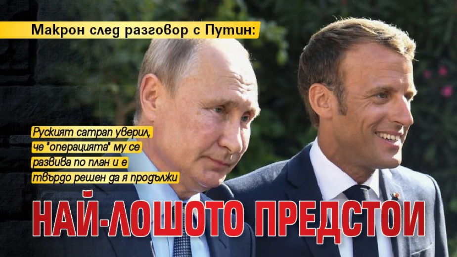 "Очакванията на президента Макрон са, че най-лошото тепърва предстои, предвид това, което му каза президентът Путин", заяви в заключение Елисейският дворец.