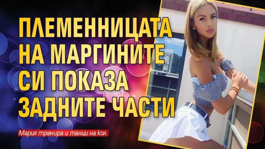 По-малката племенница на братя Маргини Мария Маринова си показа задните части. Мафиотската наследница се подкъси с бяла ефирна поличка, чиито размер не успяваше да скрие и най-интимните й подробности.