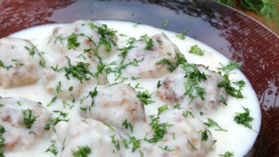 От каймата, хляба, лука, черния пипер и солта оформете смес. Направете малки и кръгли кюфтенца, оваляйте ги в брашно и ги изпържете в олиото.Наредете ги в тавичка и ги залейте със смес от разбитото мляко, счукания чесън и мазнината, в която са пържени.Запечете във фурната и поднесете ястието топло.