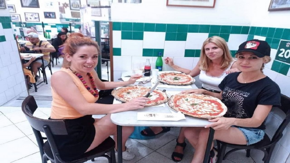 Трите приятелки са тръгнали по стъпките на Лиз от популярния роман „Яж, моли се и обичай“, който много жени четат като Библията. Това става ясно от снимките на същата пицария, за която се говори в книгата, като се твърди, че там правят най-хубавата пица в целия свят. За да хапнат от тази пица, трите дами са се редили на опашка с часове.