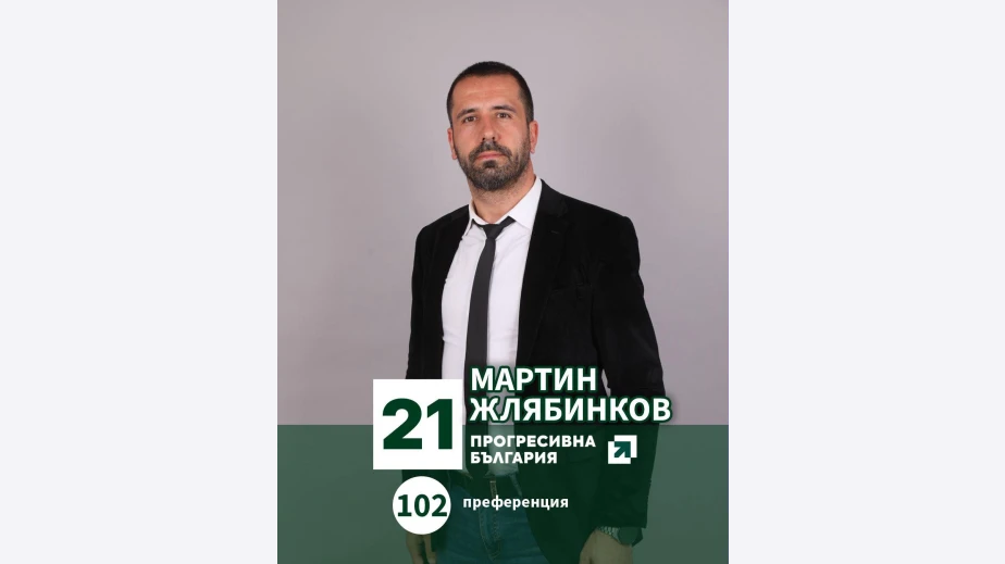 37-годишният бивш общински секретар на община Перник Мартин Жлябинков влиза в битката за парламент от 14 МИР Перник.Той е втори в листата на Коалиция „Прогресивна България“ с бюлетина № 21 и преференция 102.