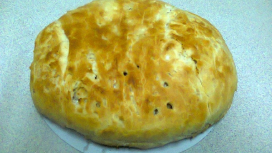 Замесваме меко тесто. Разделяме го на 7-8 топки и оставяме да почиват 20 минути. Разтапяме мас, а ако нямаме използваме олио, като го сипваме в малка купичка.