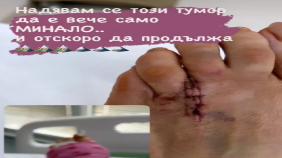 "Надявам се този тумор да е вече само МИНАЛО.. и скоро да продължа!", казва тя, добавяйки емотиконки на планински върхове, с което иска да покаже, че няма търпение да за върне към страстта си - катеренето и покоряването на върхове.
