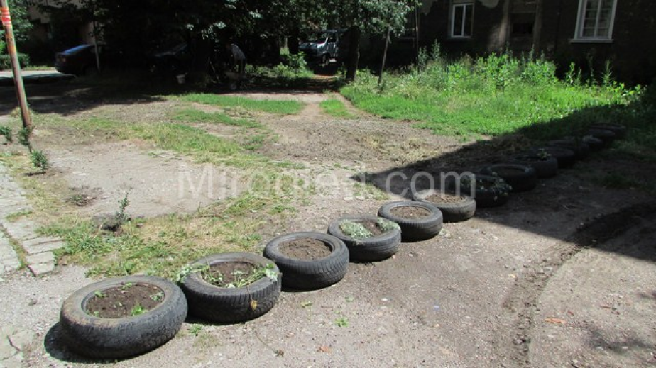 Перничанинът наредил автомобилни гуми в зелените площи пред блока. След това ги напълнил със земя и засадил цветя. Освен това запълнил дупките в ливадката с чакъл, заравнил ги и ги настлал със земя. Идеята му била да възобнови градинката пред блока, която отдавна била изпотъпкана от коли.