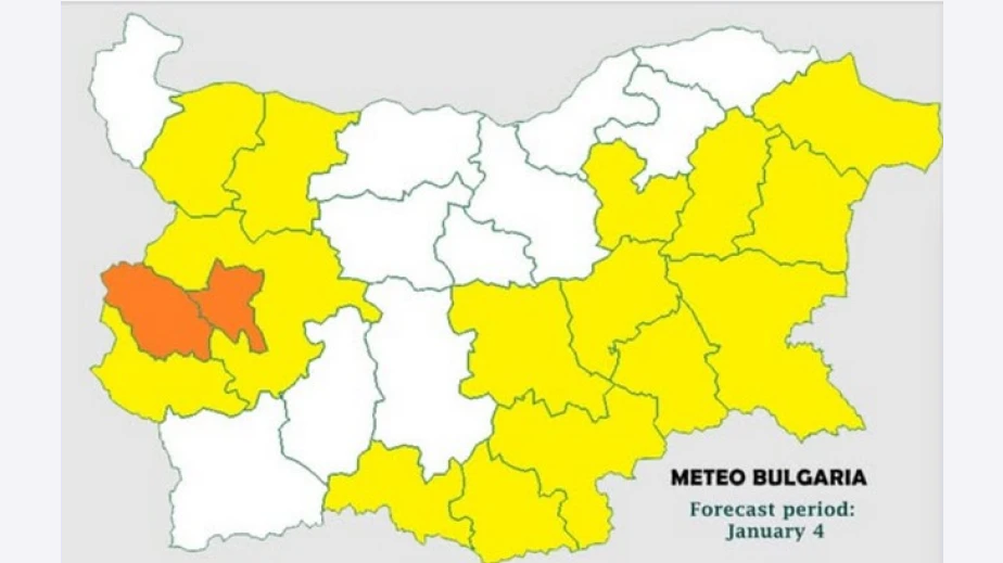 Meteo Bulgaria издаде предупреждения Level1 и Level2 за 4 януари за вятър.