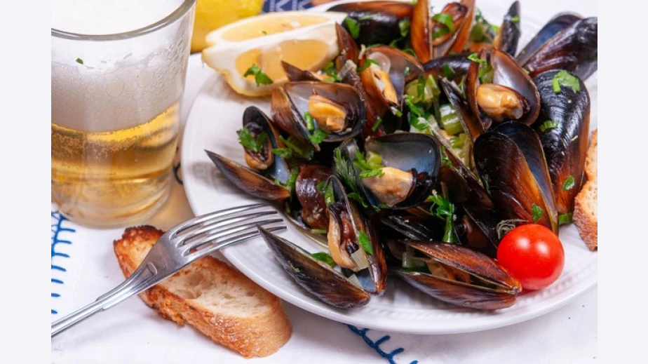 Първата стъпка от рецептата за миди с узо в гръцки стил е изборът и подготовката на продуктите. Избирате пресни миди с доказан произход, каквито са мидите с черуки от рибния щанд на МЕТРО. Почиствате мидите добре отвън, като ги изсипвате в голям съд със студена вода, след което една по една отстранете висящите от нея неща с рязко издърпване. Ако има отворени или счупени миди директно ги изхвърлете, защото не са годни за консумация. Почистете с четка или тел всяка мида отвън.