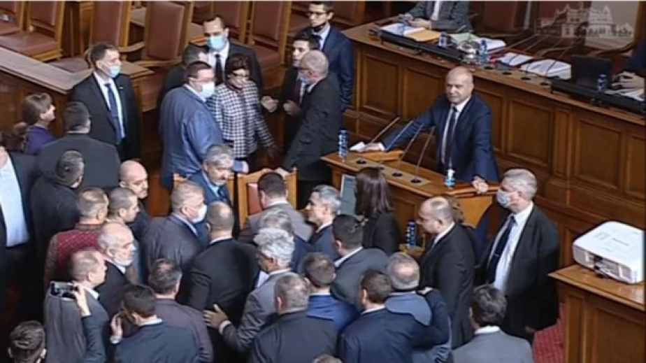 В един момент всички депутати скочиха от банките и се отправиха към трибуната. Шефът на парламента Никола Минчев слезе в опит да се опита да разтърве спорещите.