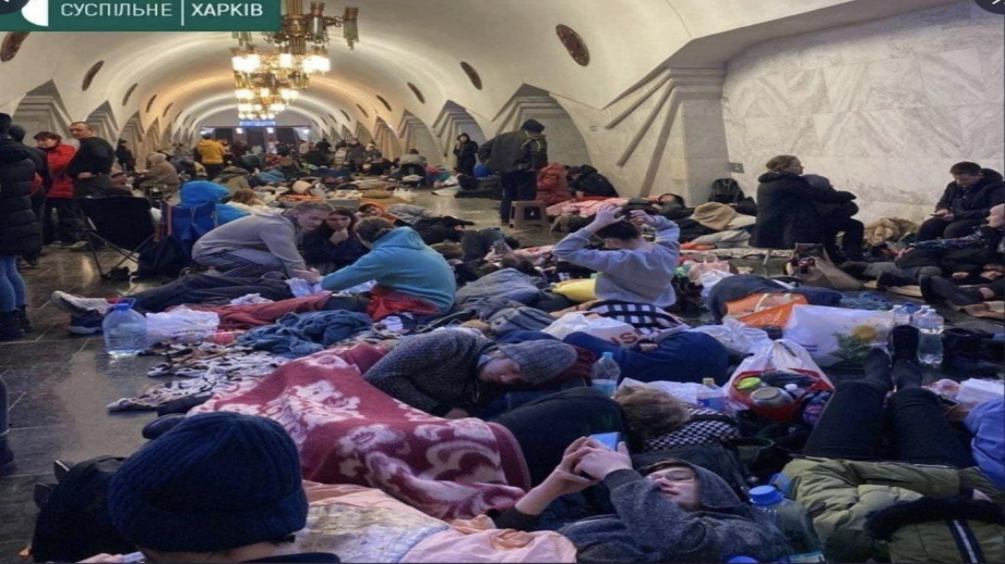 Покъртителни кадри се разпространяват в украинските и руските медии и в социалните мрежи, които показват как украинците използват метрото в Киев, Харков и в други градове за бомбоубежище.