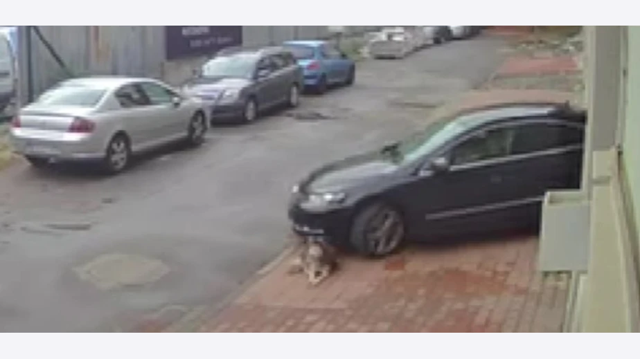 На видеоклип, разпространен в социалните мрежи, се вижда как автомобил, излизащ от паркинг, преминава през кучето, което лежи на тротоара. В един момент колата спира, шофьорът излиза от нея и поглежда, а след това потегля отново.