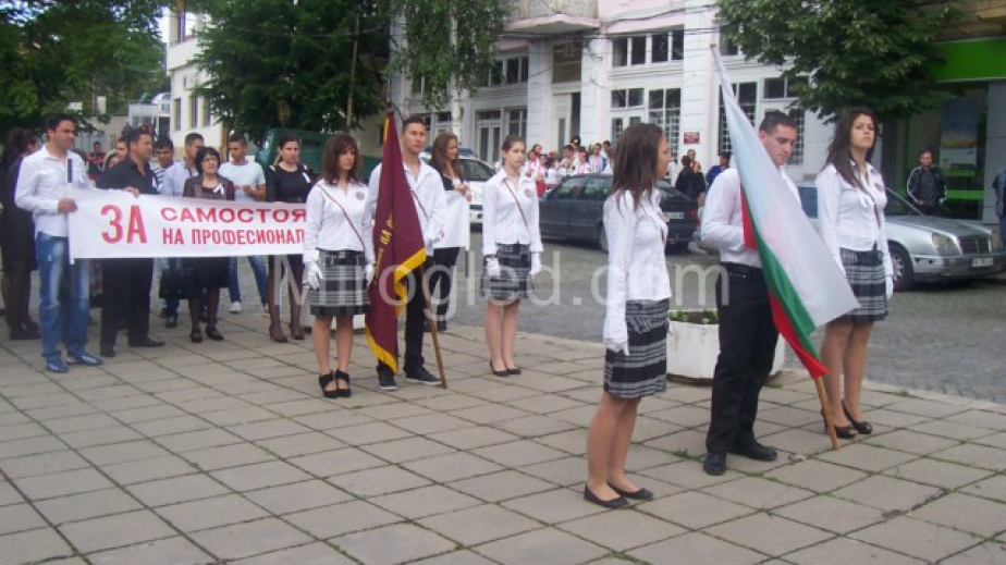 На мирен протест излязоха днес педагози и ученици от две професионални гимназии в Радомир.
