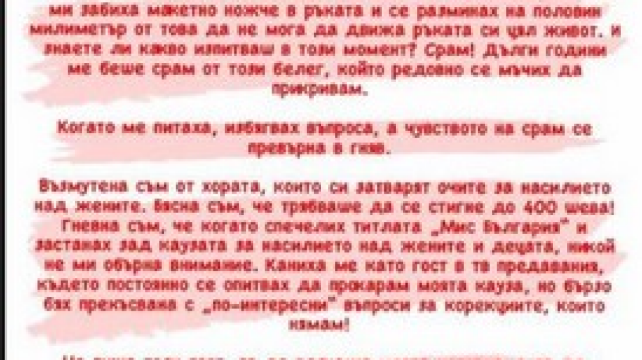Тя подчертава, че целта й не е да разкаже историята си, нито да направи паралел с неописуемата жестокост над момичето от Стара Загора.