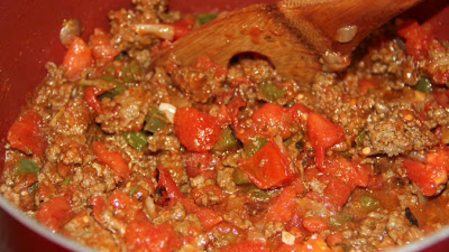 Чушките се изпичат, обелват и нарязват на парчета. Свинската и телешката кайма се раздробяват на парчета и се запържват в малко зехтин. Щом променят цвета си, се добавят нарязан на кубчета лук и чушките и се посолява. Щом лукът омекне, се слагат доматите, нарязани на кубчета, и се задушава на тих огън 10-15 минути. Чесънът се счуква и се добавя към сместа заедно с чубрица и босилек. Накрая се изсипват яйцата, разбърква се добре и се готви още 5-6 минути.