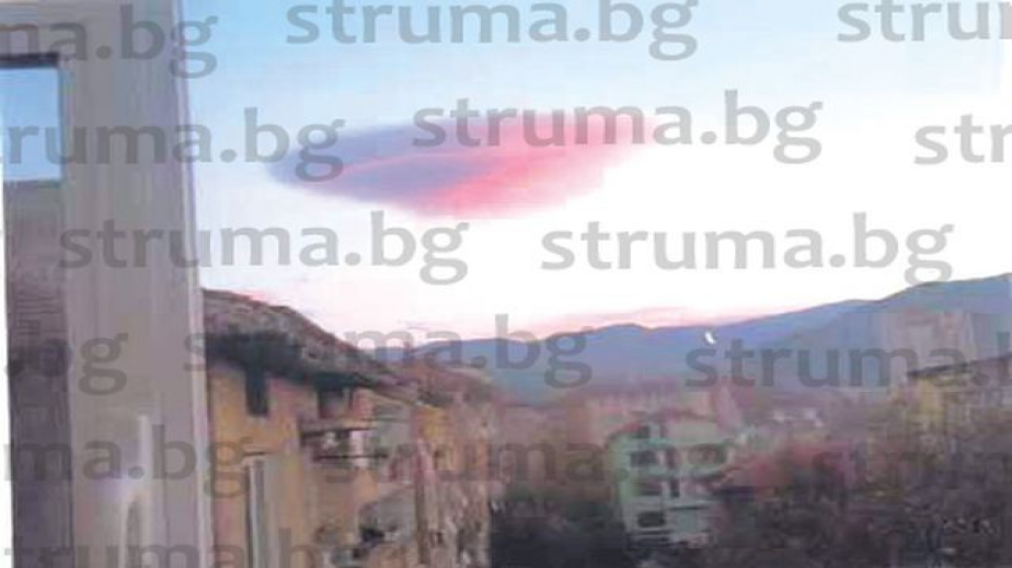 Нещо летящо с формата на сфера и ярко изразено оцветяване – розово-червено в горната половина и сиво-черно в долната, засне от терасата си в четвъртък вечерта собственичката на туроператорска фирма в Благоевград Здравка Чимева. Сферата се появила около 20.00 часа над хълма между гробищата и кв. „Еленово“, където за пръв път се появява слънцето при изгрев, задържало се няколко минути и се разтворило във въздуха. Чимева успяла да му направи няколко снимки с телефона си, предполагайки, че най-вероятно все пак не става въпрос за НЛО, а за облак – въпреки необичайната форма, цвят и мистериозно изчезване, пише Струма.бг.